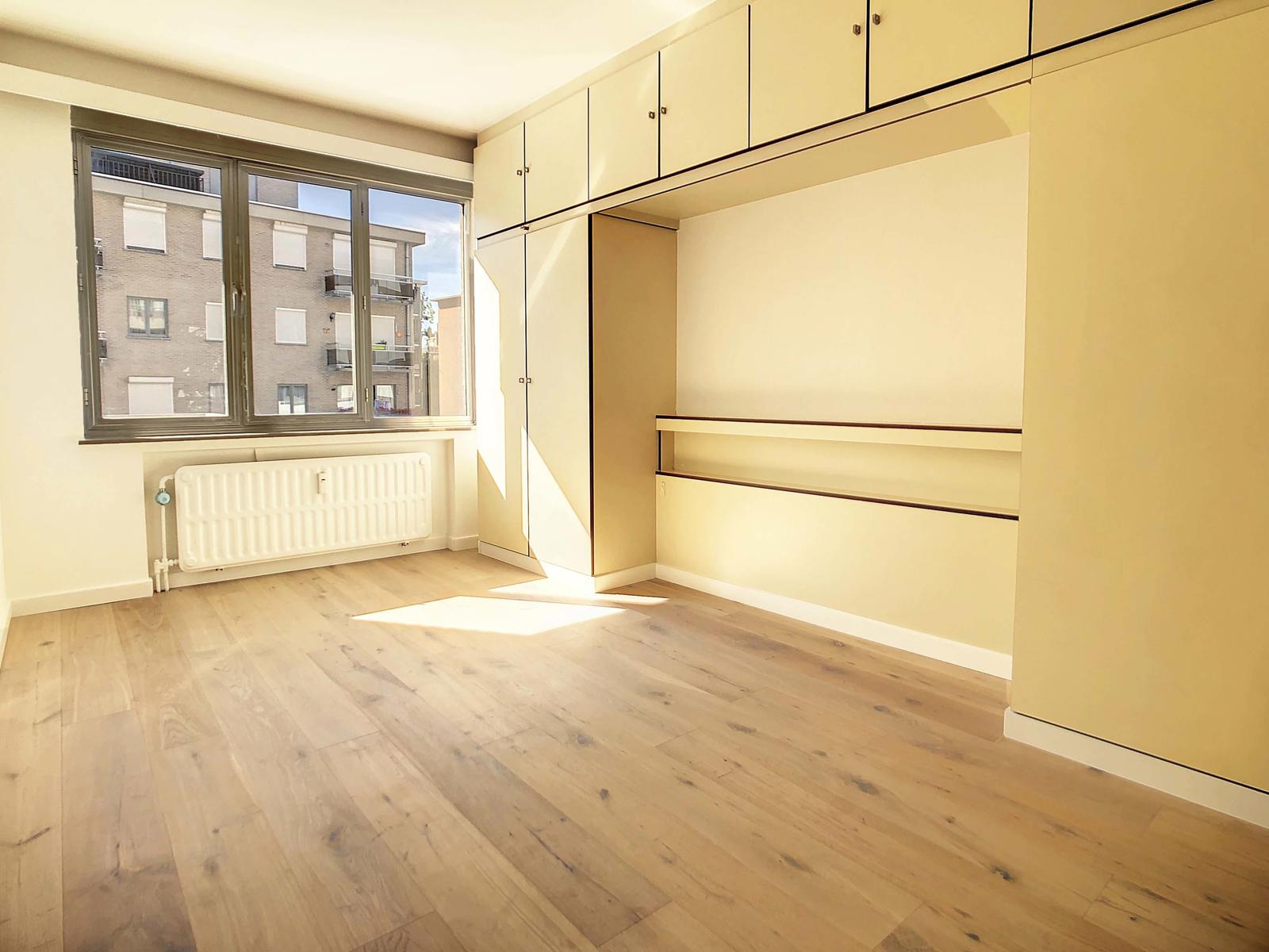 Jette - grens met Ganshoren - in een aangename woonwijk, op de eerste verdieping van een klein condominium, bieden wij dit prachtige appartement aan, badend in het licht en volledig gerenoveerd. Het is als volgt samengesteld: Grote inkomhal met vestiaire, prachtige woonkamer van 32 m² met zicht op de keuken, grote nieuwe keuken met vaatwasser, afzuigkap, oven, magnetron en gasfornuis, wasruimte, prachtige badkamer, ligbad met inloopdouche , apart toilet, 2 slaapkamers van 15 (met ingebouwde kasten) en 8 m², 2 mooie terrassen (voor en achter) en een kelder. Conforme elektriciteit. Virtuele rondleiding beschikbaar. Absoluut te bezoeken. Alle informatie wordt louter ter informatie gegeven en is niet contractueel.